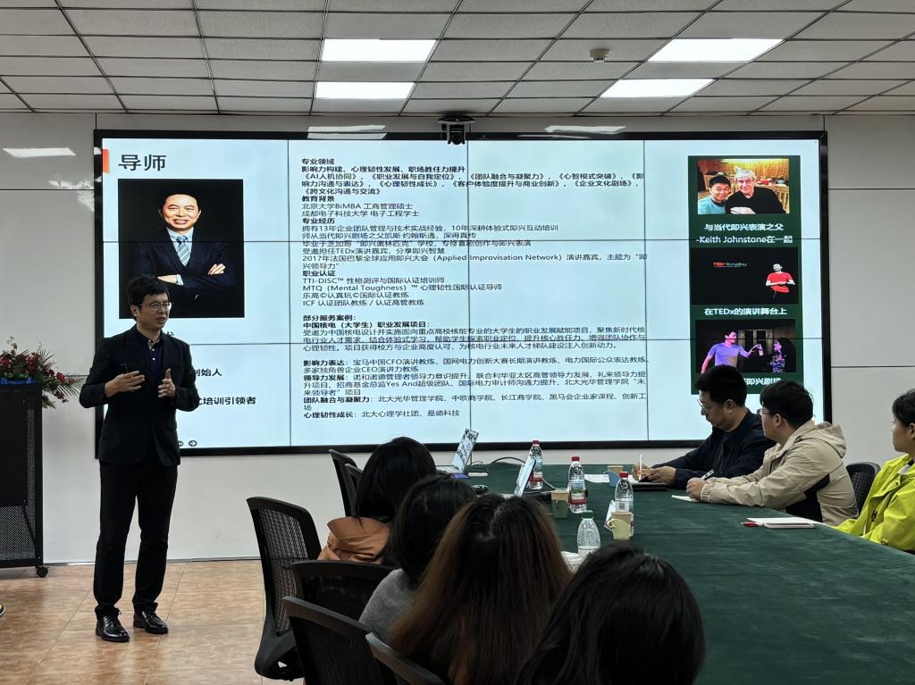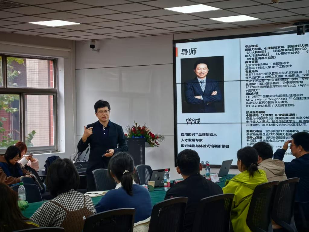 10月30日,国际学院“宏志助航·跨界赋能”就业能力提升训练营第四讲圆满举办。活动特邀应用即兴TM品牌创始人、人才发展专家曾诚主讲,国际学院副院长尹成远、学业发展指导办主任白薇出席,现场座无虚席,学生参与热情高涨,互动氛围浓厚。