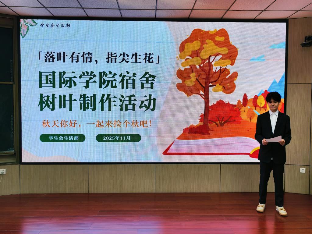 为丰富同学们的宿舍文化生活,激发大家的动手创造力与热情,国际学院学生会生活部于11月22日开展了“落叶有情,指尖生花”树叶手工制作活动,以“落叶”为媒,面向25级各班宿舍,让秋日的诗意在指尖流转,让宿舍的角落绽放独特光彩。