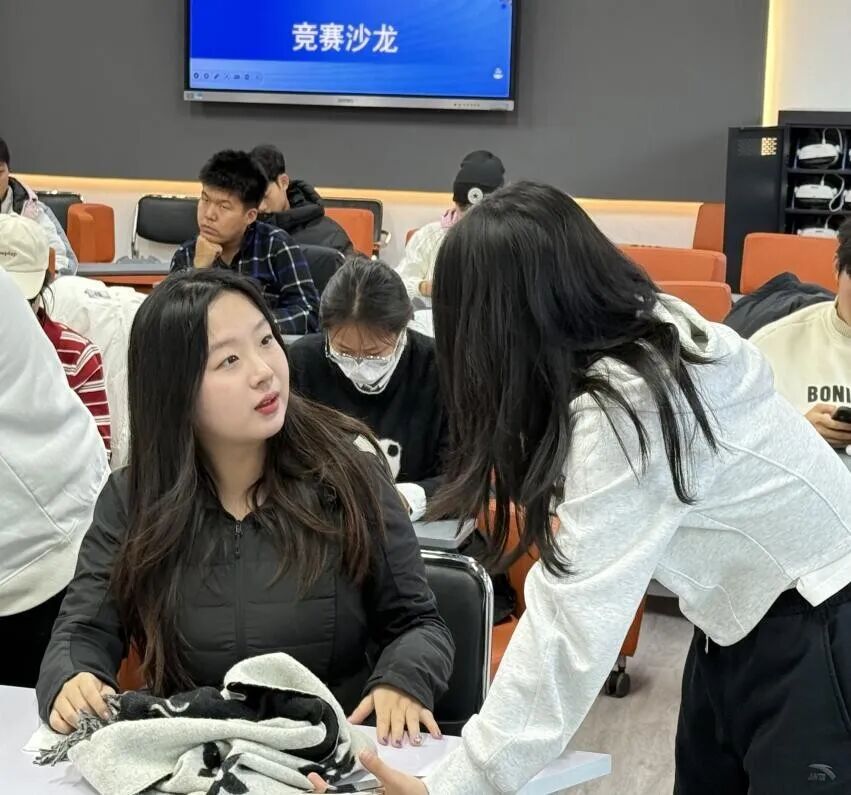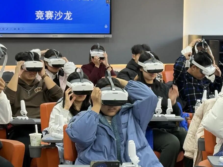 活动伊始,在胡昕婷老师的带领下,同学们走进VR虚拟仿真实训中心,结合实训设备,生动讲解了VR技术的原理、应用场景及发展趋势,引导同学们主动思考“如何将VR技术与竞赛项目深度融合”,在思维碰撞中拓宽创新视野,为竞赛项目的创新方向提供了全新灵感。