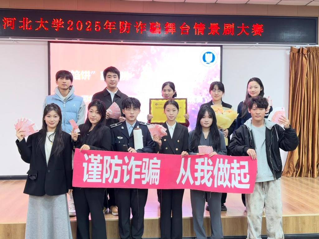12月4日,在河北大学2025年防诈骗舞台情景剧大赛中,我院凭借《AI换脸诈骗局》斩获第四名,校级三等奖的优异成绩,以贴近生活与科技的演绎为师生敲响防诈警钟。