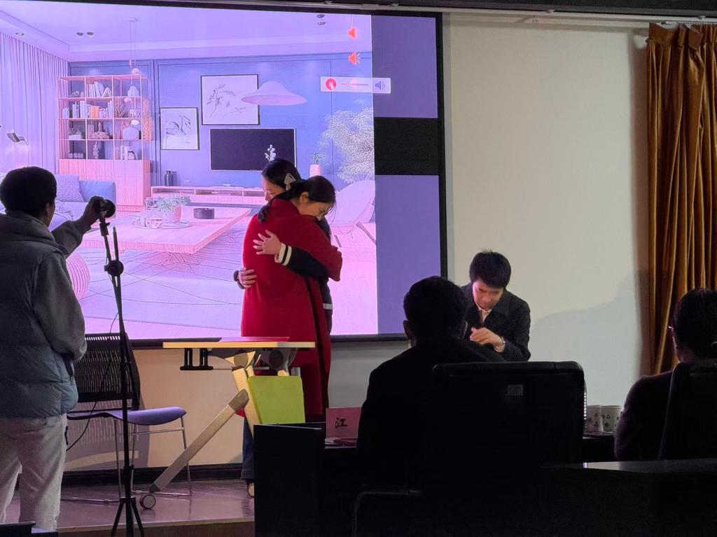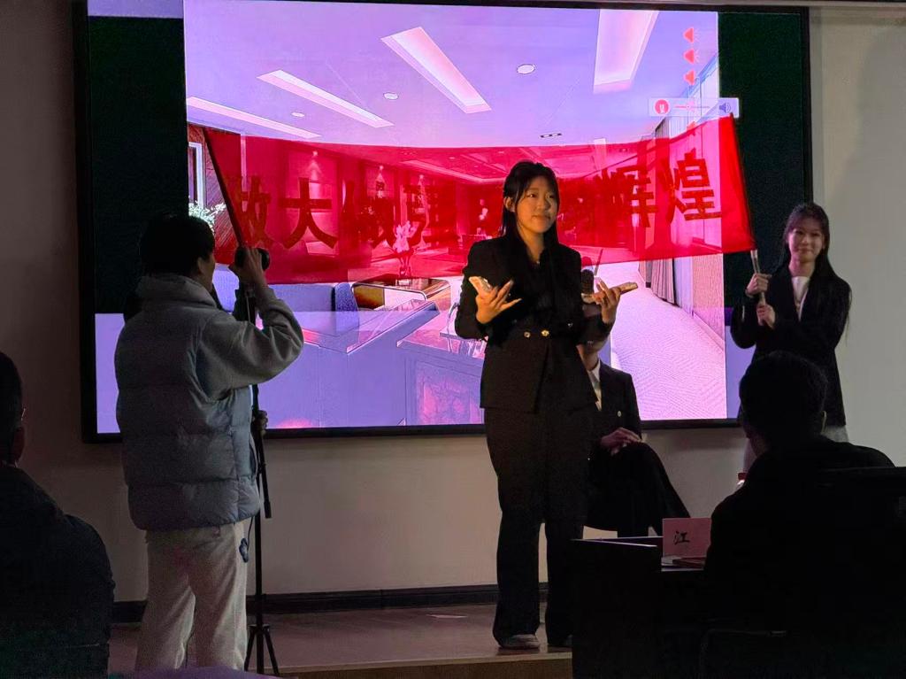 本次参赛团队由国际学院艺术教育中心颜若寒担任领队,王建慧、赵晓曦老师为指导老师,伊雨涵、张昊天、刘芮汐、冯嘉怡、刘依楚璇、高嘉淇、谢一睿、吴玉婷、曲恺阳,刘一然,刘子钰,张佳蒸为参与成员。为了呈现最佳舞台效果,同学们展现出极高的积极性,反复打磨排练,对每一句台词、每一个动作都精雕细琢。剧目以AI换脸诈骗为主题,讲述了林父遭遇AI合成视频诈骗、不听女儿劝阻险些转账,最终成功识破骗局,社区民警也借此契机开展反诈宣传的故事,生动演绎了AI诈骗的套路与防范要点。