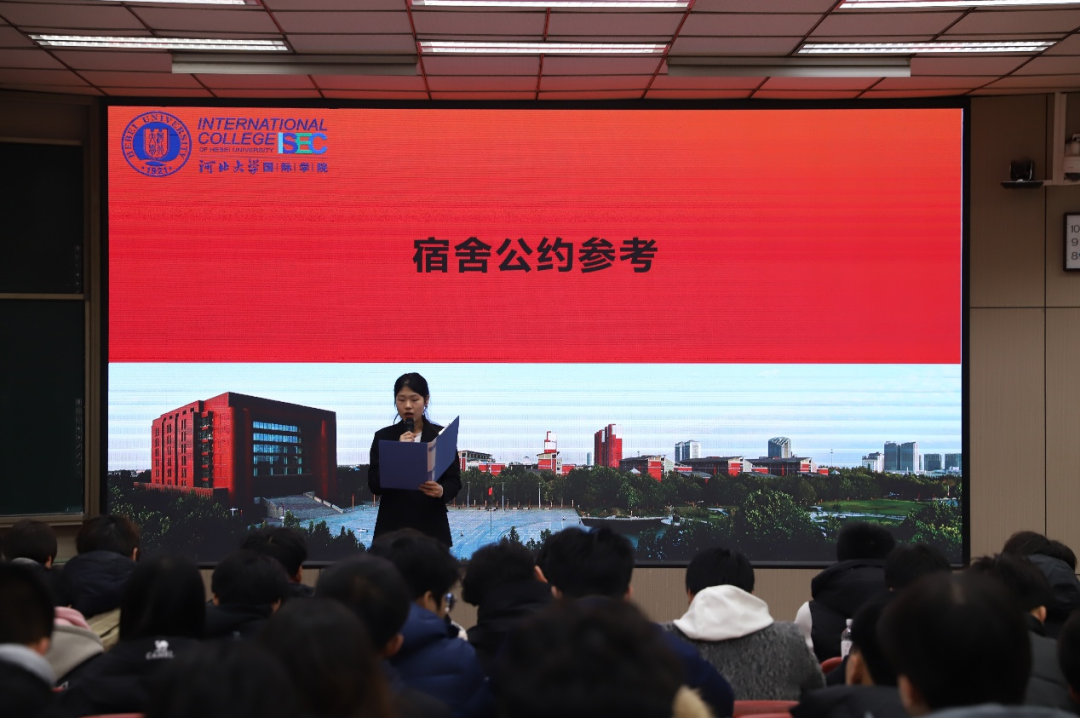 本次培训大会旨在凝聚起共建文明宿舍的思想共识,让文明自律理念深入人心。愿国际学院全体同学将所学转化为行动,以公约为尺、以文明为标,用尊重包容相待、用自律规范言行,让每一间宿舍都成为安静和谐、温馨友爱的成长阵地,共同塑造国际学院学子的文明新风尚!
