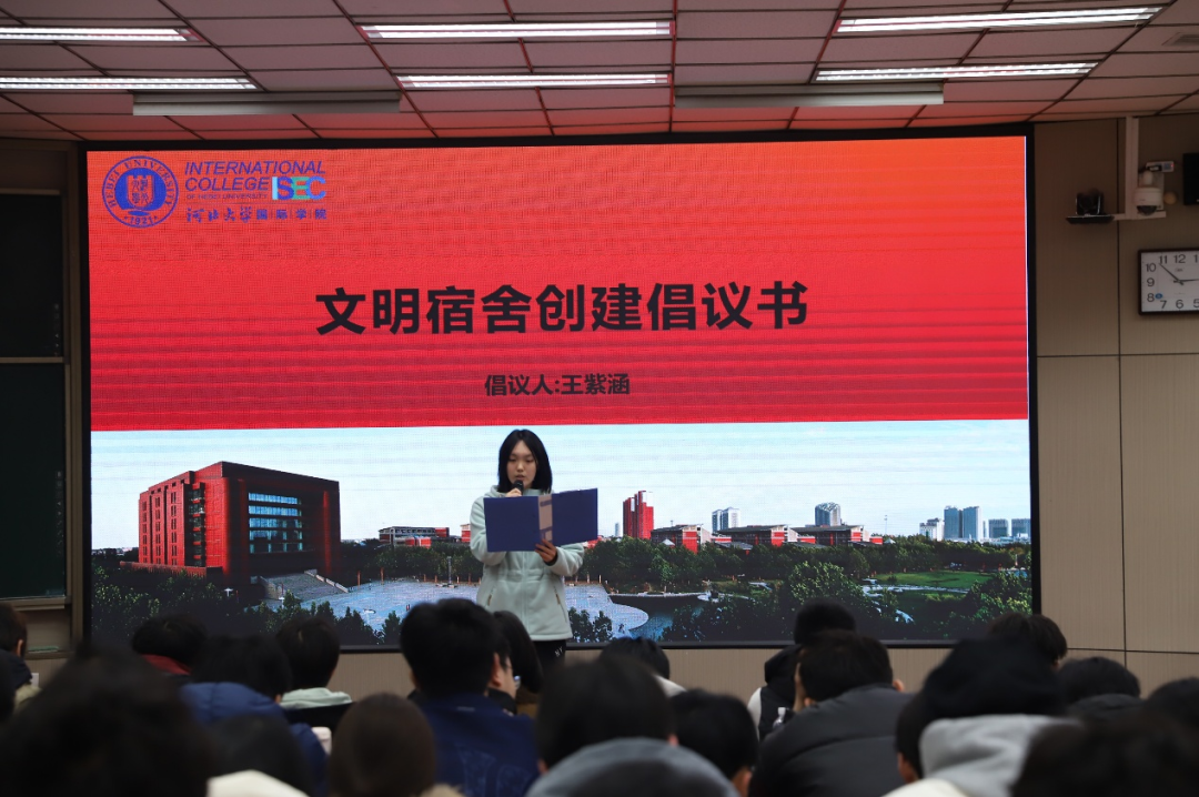 随后大会组织参会同学深入学习《国际学院文明宿舍公约》,明确宿舍文明建设的行为准则。各宿舍长在学习中明晰了自身职责,纷纷表示将带头遵守公约、做好示范引领,主动带动室友共同践行宿舍文明,扛起宿舍建设的责任担当。